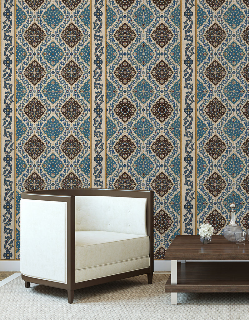 Turkish Tile is a new patterned wallpaper from the Villa Ephrussi Garden mural, part of the Wanderlust Collection with Michelle Nussbaumer. This wallpaper can be used as a stand-alone design or combined with other Villa Ephrussi patterns to create the sought-after maximalist look