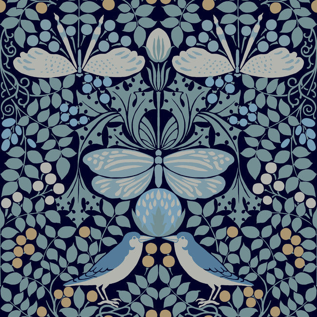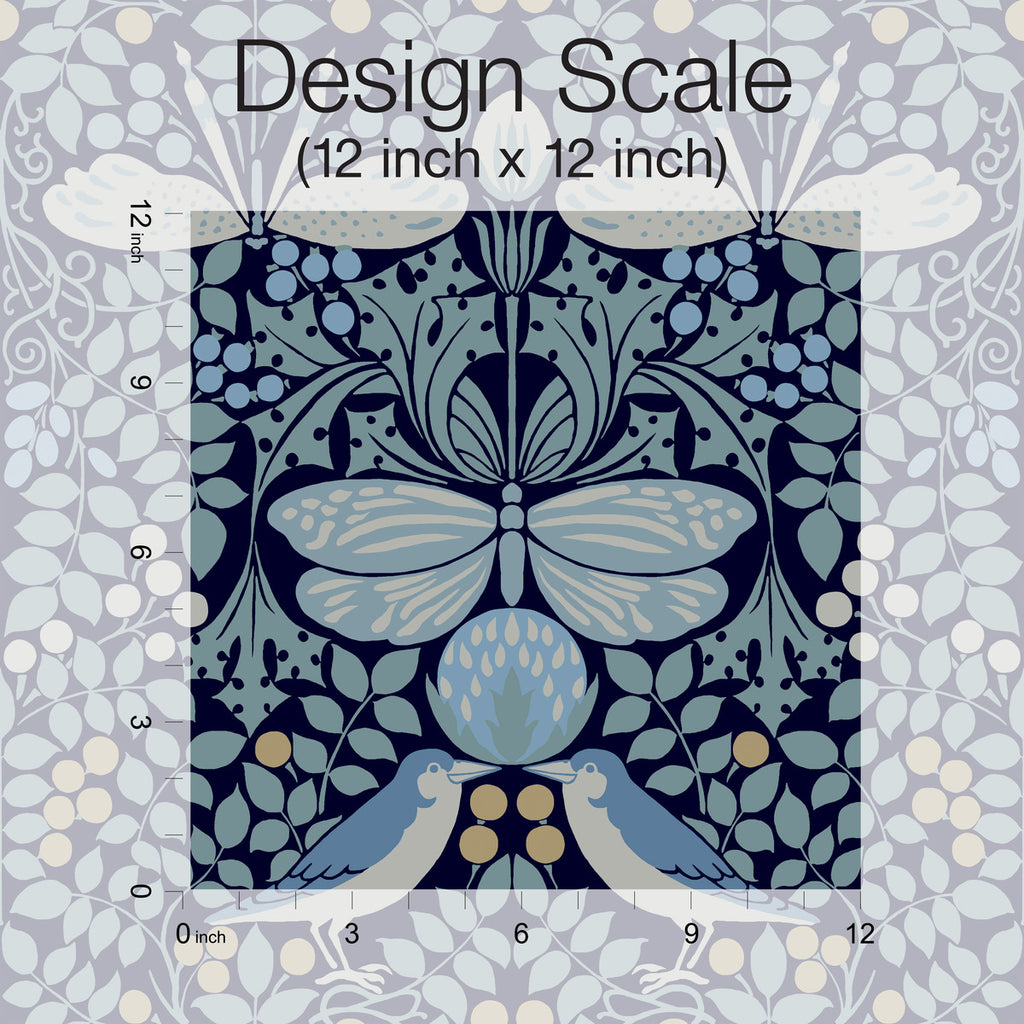 Influenced by William Morris’ principles of incorporating lush flora and fauna into his work, Butterfly Garden is a spectacular pattern created for a furnishing fabric in 1918 by architect-designer, C.F.A. Voysey.