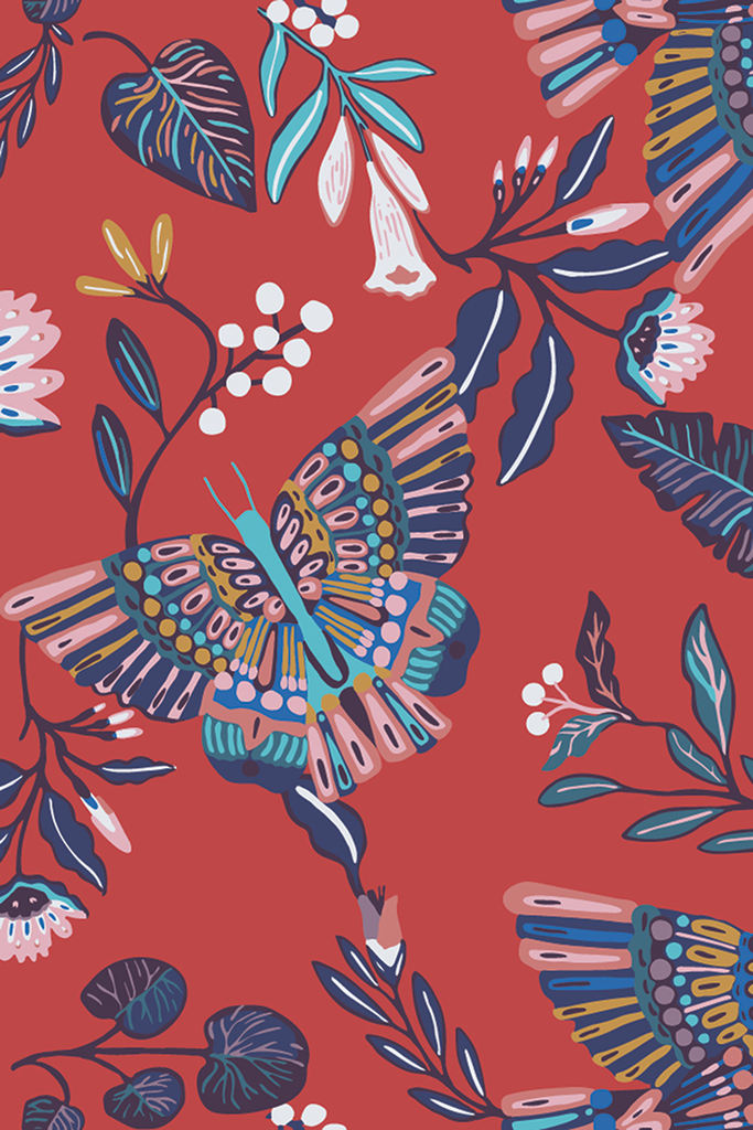 Bella Butterflies Red Wallpaper | Phillipe Romano Screen Prints