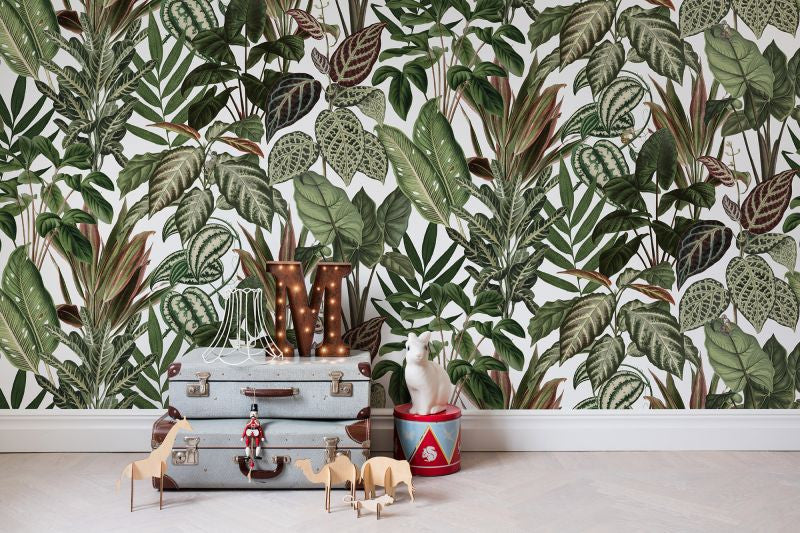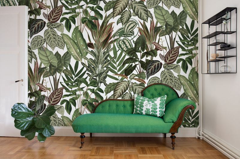 Playful monkeys swing through lush green foliage in this whimsical yet refined design by Rebel Walls. Perfect for adding charm and personality to any space. #luxurywalls #decorinspiration #elevatedinteriors