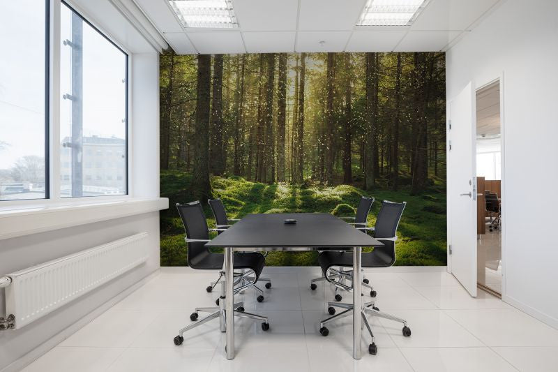 Immerse your space in tranquil greens with Forest Bath Wallpaper | Rebel Walls—a serene escape into nature’s embrace. #luxurywalls #interiorstyle #moderndesign
