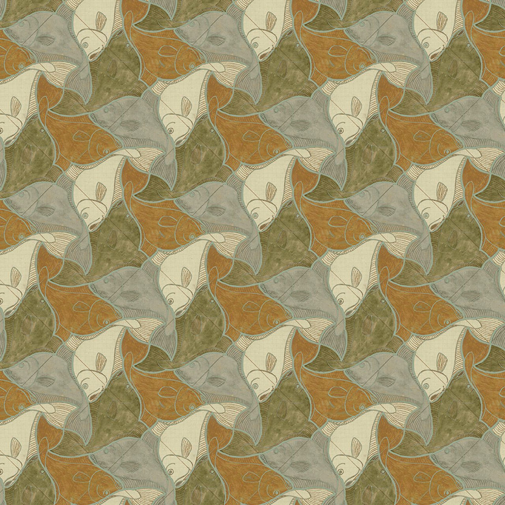 Dive into a world of art with the Fish Orange Green Wallpaper by MC Escher Wallpaper. An abstract aquatic fantasy waiting to grace your walls! #ArtisticWallpapers #MCEscher #HomeDecor