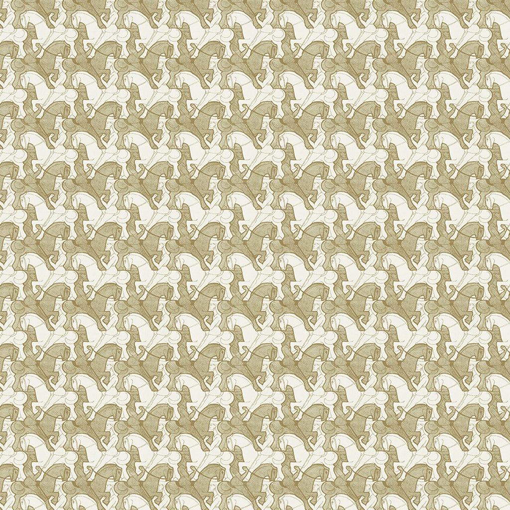 Horseman Beige Wallpaper by MC Escher Wallpaper features a mesmerizing tessellation of stylized horses in soft beige tones, creating an intricate, repeating pattern that blends art with elegance. Perfect for sophisticated interiors. #decorinspiration #luxurywallcoverings #designerinteriors