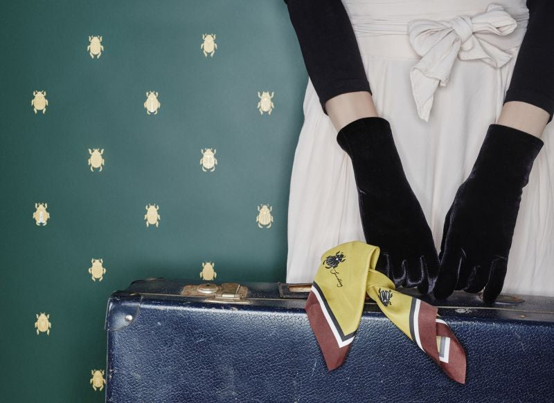 Audrey green gives you timeless elegance to any room. With its mythical scarabs which all have their own covers on their backs, is quirky yet haute couture at the same time. Like small amulets, each beetle forms a seal. Also available in yellow and turquoise. Design: Sara Bergqvist
