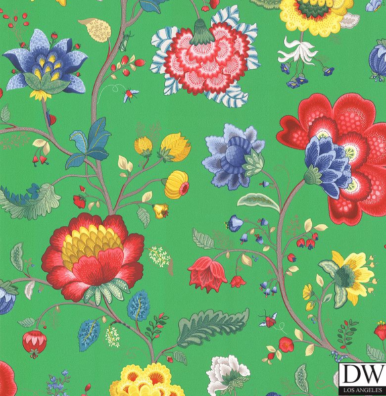 Create a happy and colorful home with this fascinating wallpaper design. Enchanted florals mix with metallic accents for an eclectic Jacobean motif that's a breath of fresh air