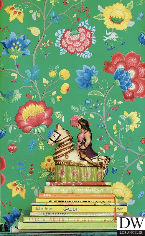 Epona Green Floral Fantasy Wallpaper by LA Walls showcases delicate green foliage and blooming florals, creating a serene, natural ambiance perfect for elevating interiors with subtle elegance. #wallcoverings #homeaccent #luxuryinteriors