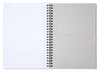 Our spiral notebooks are 6" x 8" in size and include 120 pages which are lined on both sides. The artwork is printed on the front cover which is made of thick paper stock, and the back cover is medium gray in color. The inside of the back cover includes a pocket for storing extra paper and pens.