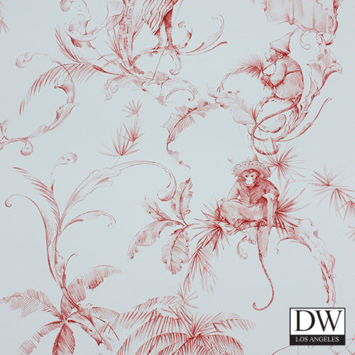 The Gibralter Monkey Toile Wallpaper by British Walls features an elegant toile pattern with whimsical monkey motifs set against a classic backdrop, blending playful charm with timeless design. Perfect for sophisticated, imaginative interiors. #interiordecor #wallart #luxurywalls