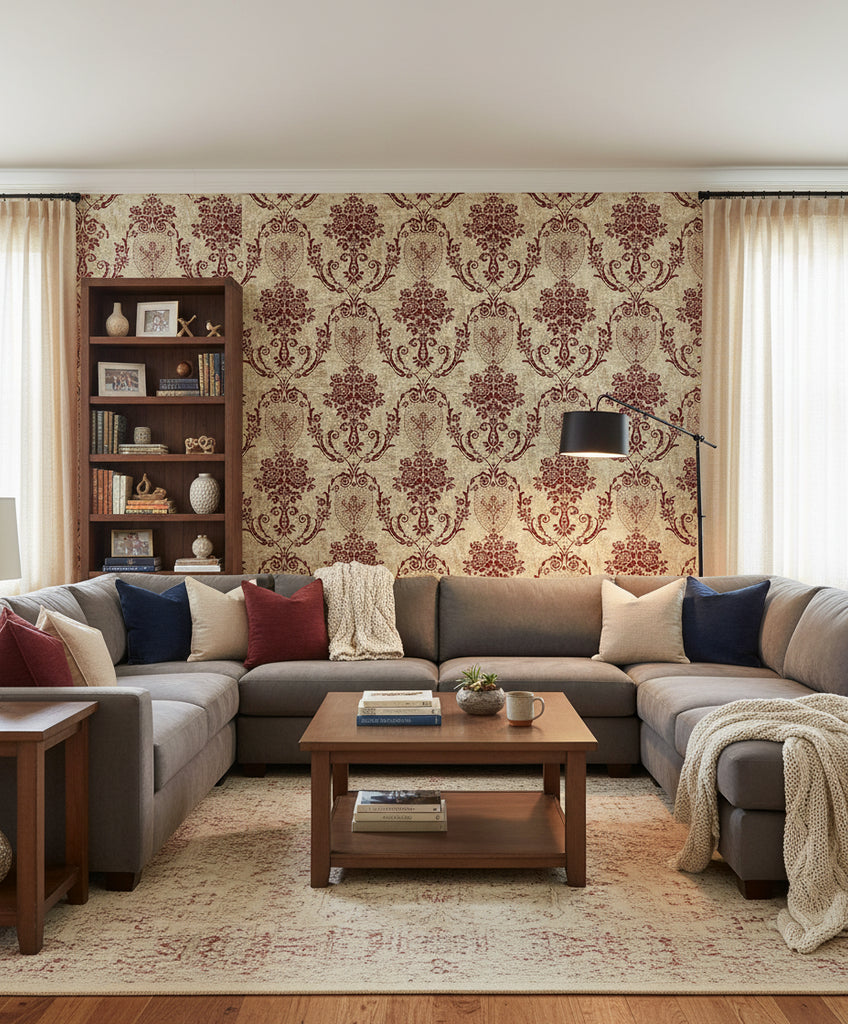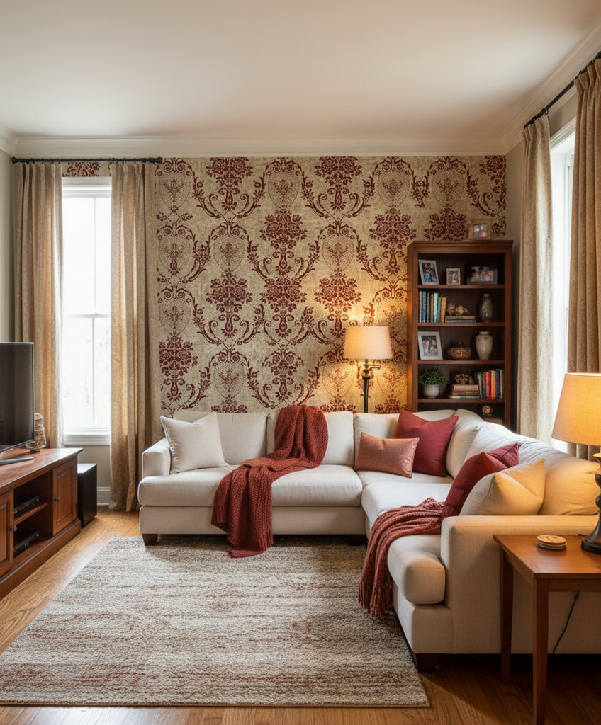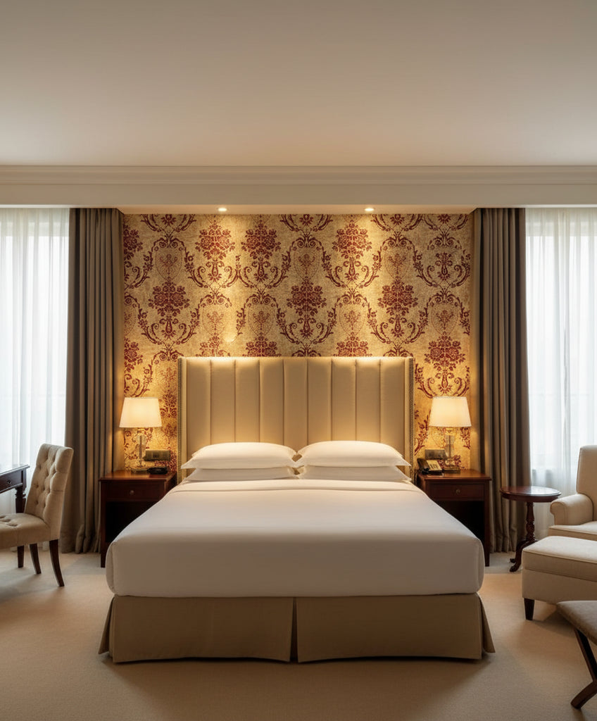 This wallcovering features a subtle, textured pattern reminiscent of woven fabric. The neutral color palette and minimalist design create a calming and sophisticated atmosphere. Ideal for adding depth and visual interest to any interior space.