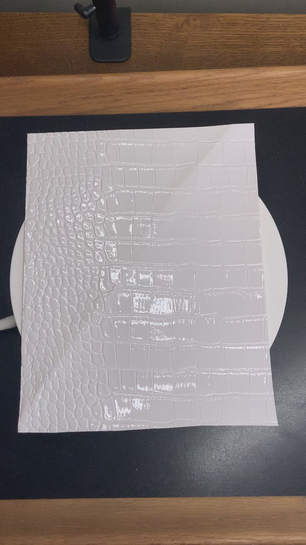 A refined white vegan leather wallcovering with an embossed crocodile texture—luxury with a tactile edge. #luxurywalls #veganleather #texturedinteriors