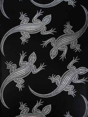Lizzie Lizard Wallpaper - Electric Silver on Black