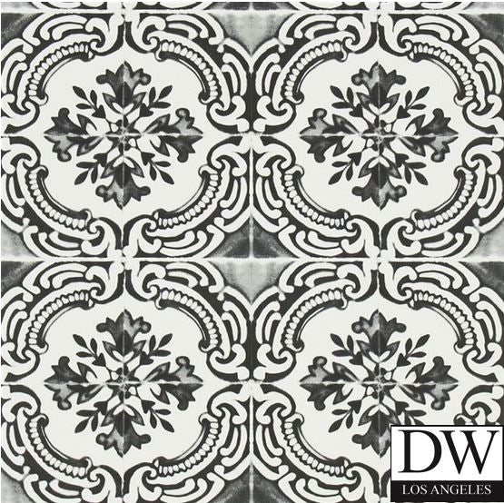 European Classic Wallcovering. A beautiful vintage tiled wallpaper design with a photographic feel for faded authenticity. Available in a number of contemporary colours including some metallics.