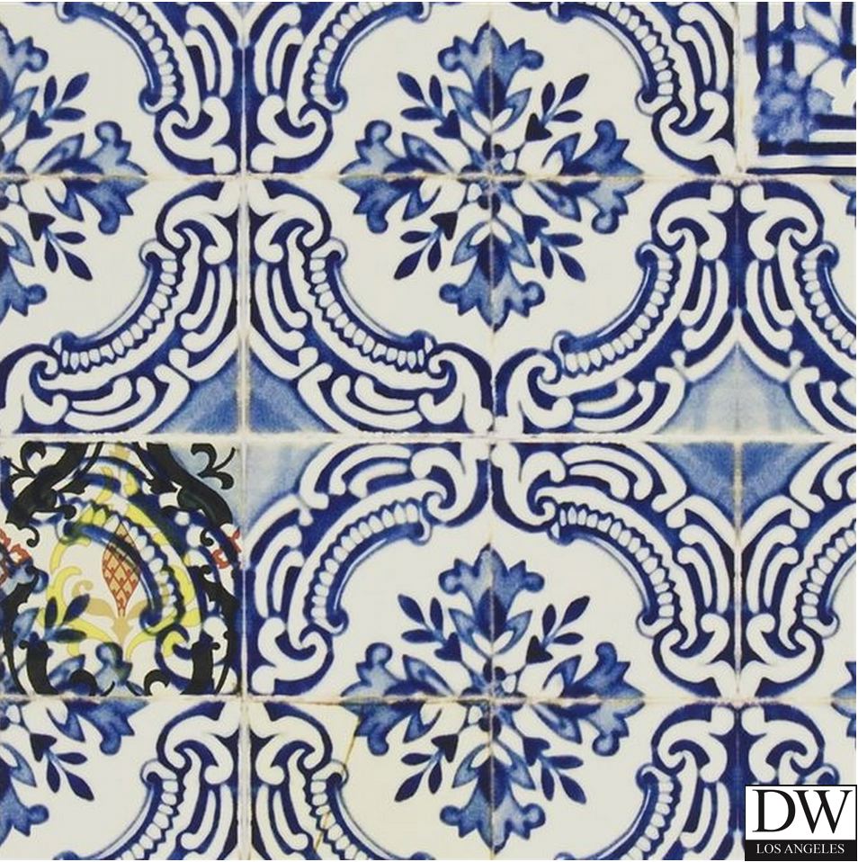 European Classic Wallcovering. Borrowing the tiled backdrop from the inspired fabric design, this beautiful digitally printed wallpaper offers a very authentic impression of tiling, with alternating varieties in the tiles and touches of bright colour.
