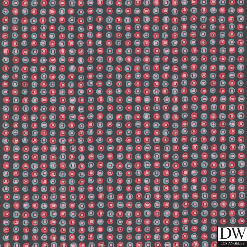 Create an intriguing entrance in any room with this colorful geometric wallpaper. With hand-painted appeal, red and teal circles give way to rose colored squares for a design that's truly mesmerizing.