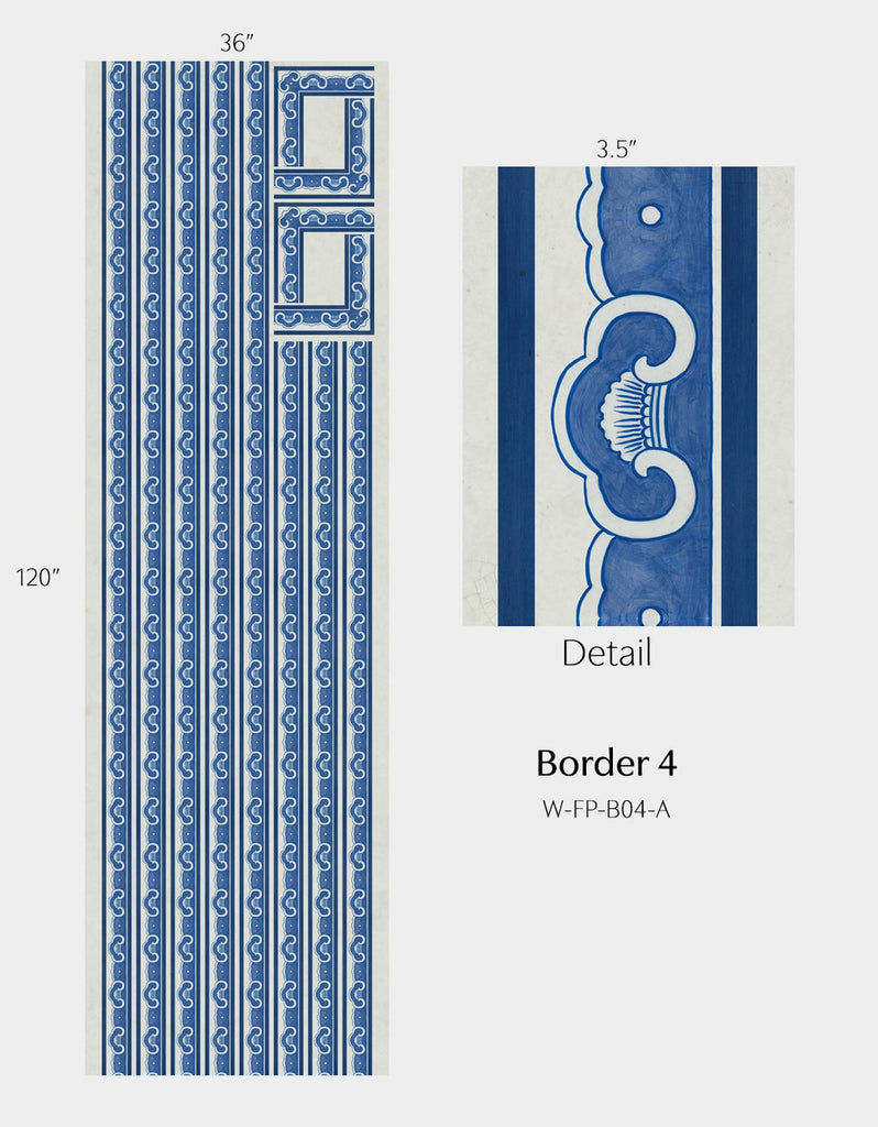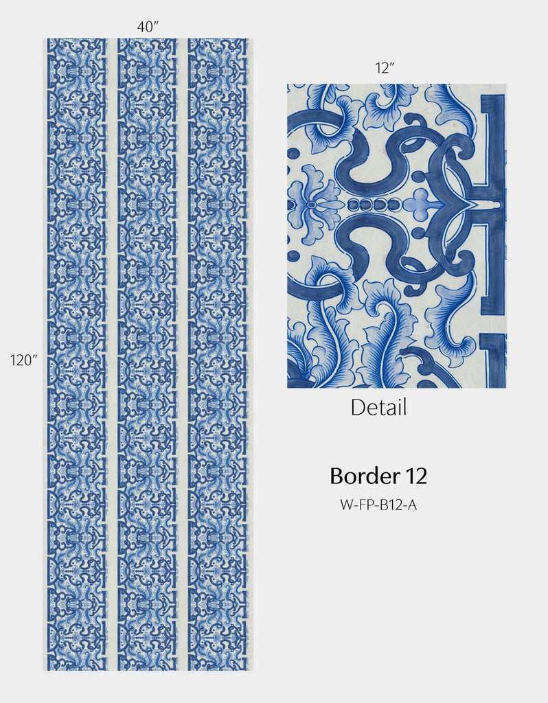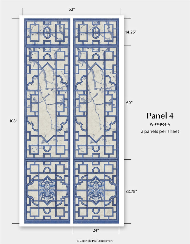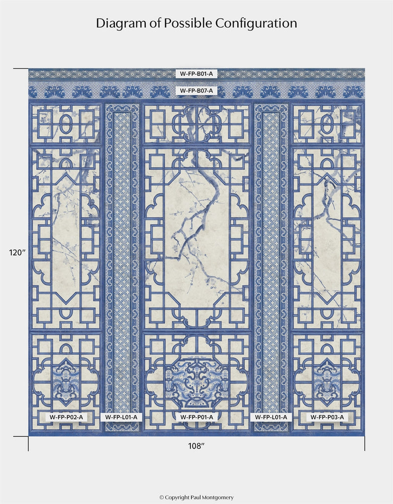 Inspired by Michelle Nussbaumer's enduring love of blue and white, Far Pavilions borrows motifs from Michelle's vast personal collection of Chinese Porcelains. Combine and arrange elements to create an Eastern delight. Printed on nonwoven ground. This Mural Source design can add visual interest or color to a bedroom, living room, or any room in your apartment or home; wall covering mural has various panels, patterns and modular elements for custom arrangement. The Far Pavilions design is a chic addition to any room. 4 Panels / 17 Additional Panels Available in Full Length/Headers/Footers, Sold in individual Panels, Width: Various, Design Height: Various, Total Height: Various, Far Pavilions,Paul Montgomery Studios