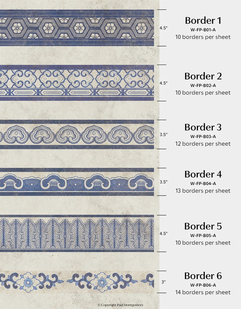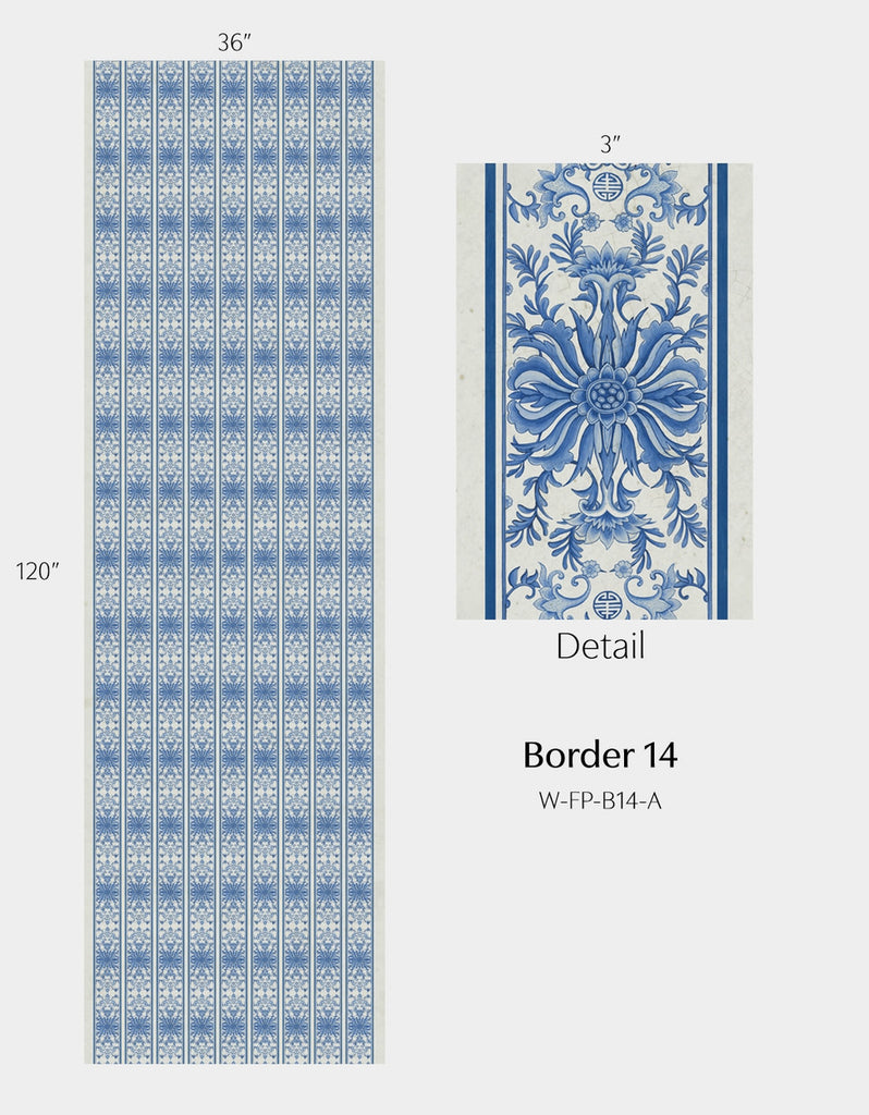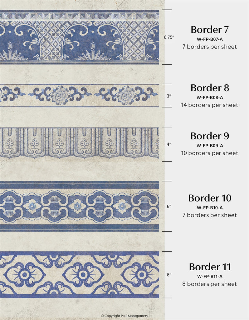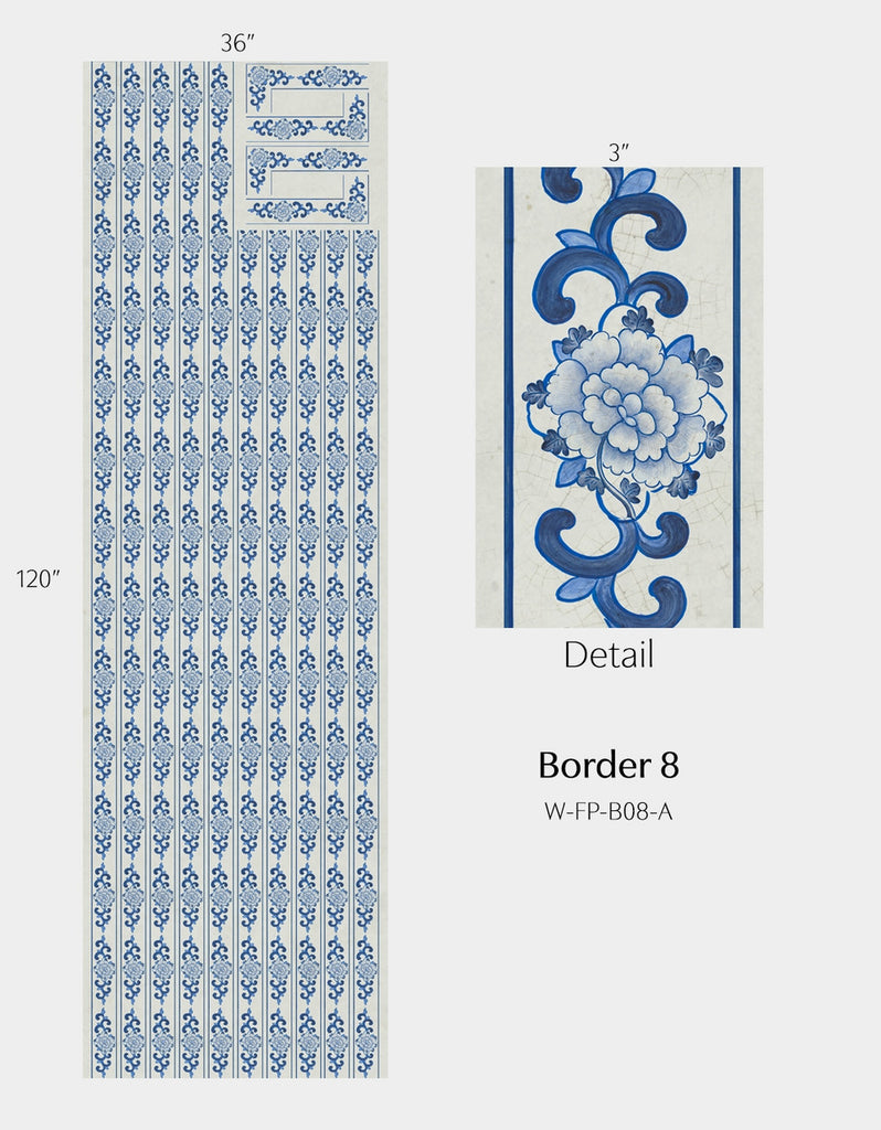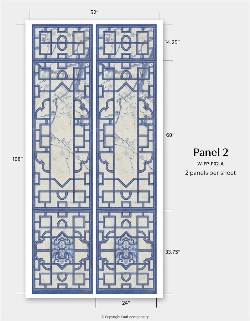 Inspired by Michelle Nussbaumer's enduring love of blue and white, Far Pavilions borrows motifs from Michelle's vast personal collection of Chinese Porcelains. Combine and arrange elements to create an Eastern delight. Printed on nonwoven ground. This Mural Source design can add visual interest or color to a bedroom, living room, or any room in your apartment or home; wall covering mural has various panels, patterns and modular elements for custom arrangement. The Far Pavilions design is a chic addition to any room. 4 Panels / 17 Additional Panels Available in Full Length/Headers/Footers, Sold in individual Panels, Width: Various, Design Height: Various, Total Height: Various, Far Pavilions,Paul Montgomery Studios