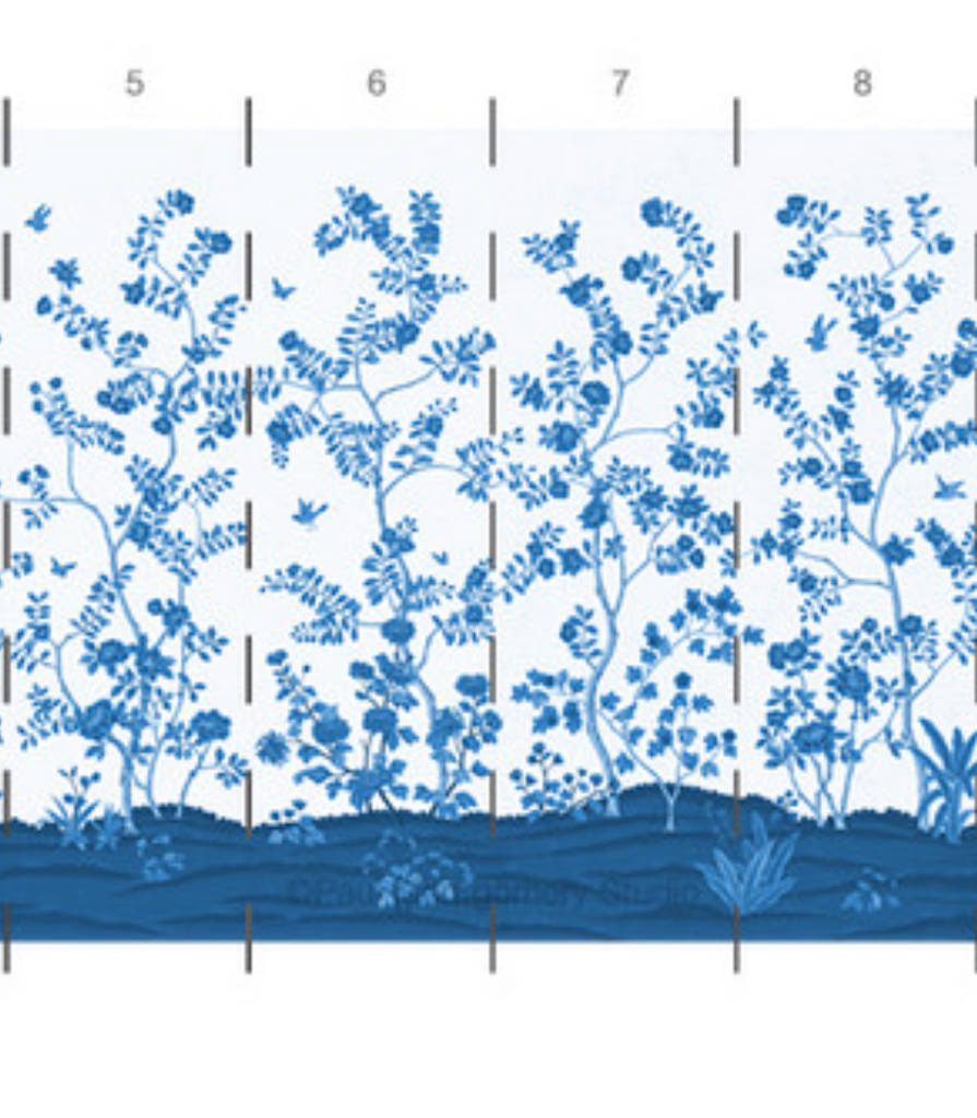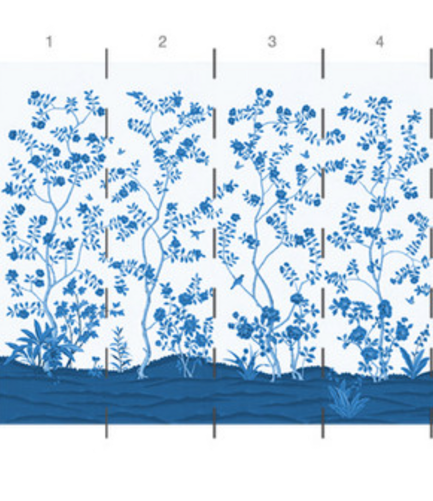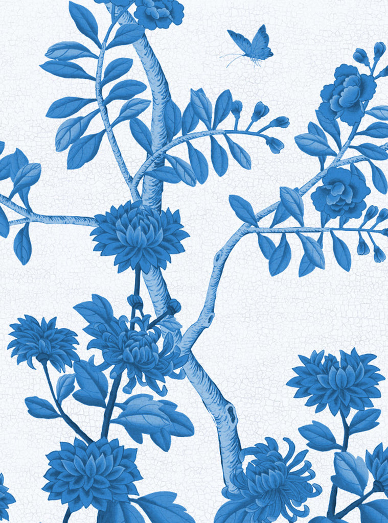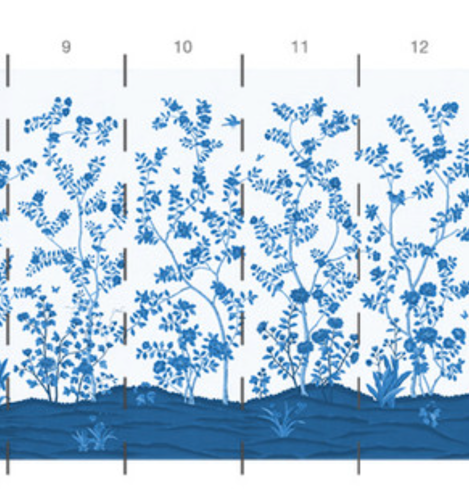 Mughal Garden Porcelain Blue Mural | Paul Montgomery Studios