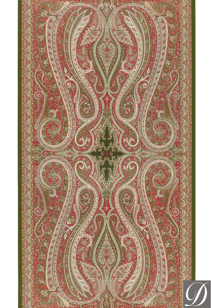 This grand and exquisitely detailed paisley design by Martyn Lawrence Bullard is adapted from an antique paisley shawl that caught Martyn's eye. It features a dramatic vertical repeat, with a center medallion and border design reproduced from the original fabric. The colorations include a menswear inspired charcoal, classic red, exotic orange and soft blue, all with unexpected accents of complementary shades. This wallcovering is perfectly suited for an expansive room and be can paired with the coordinating Pasha Paisley fabric to make a fashionable statement in any room.