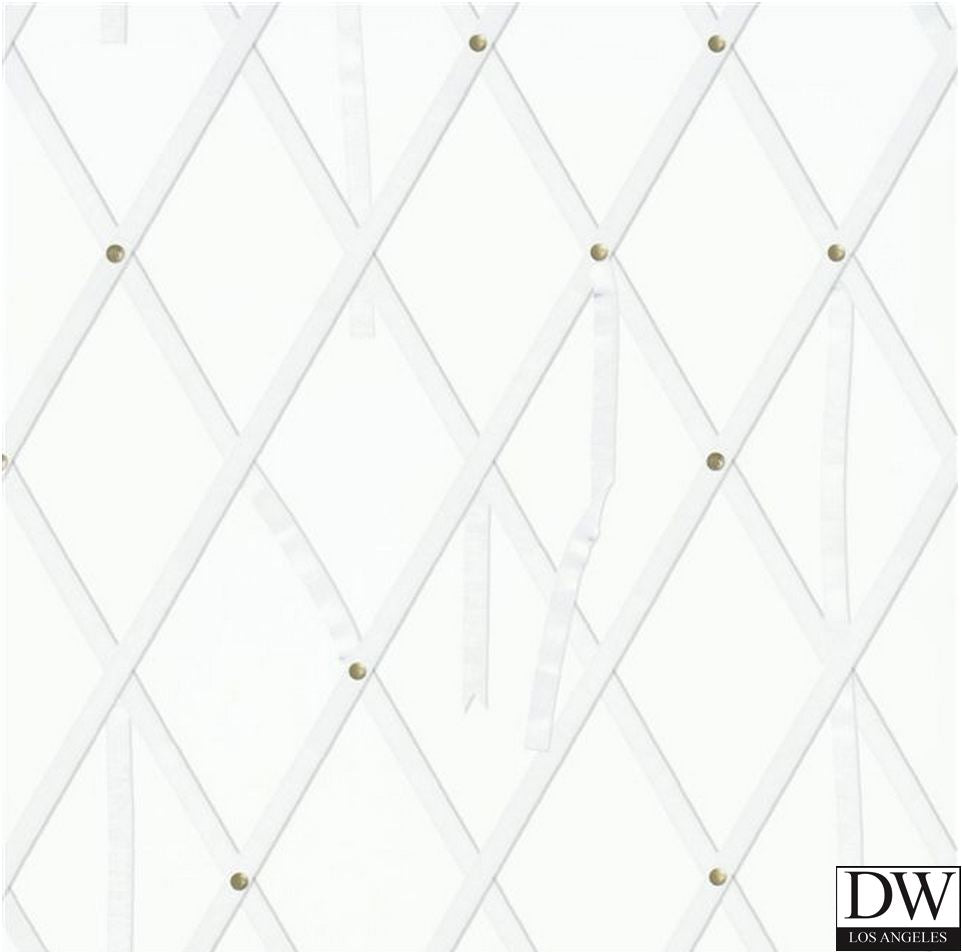 European Classic Wallcovering. Designed to recreate a ribboned pinboard, with brass pins printed to appear realistically three-dimensional. Printed on a luxurious non woven ground for easy hanging. Washable.