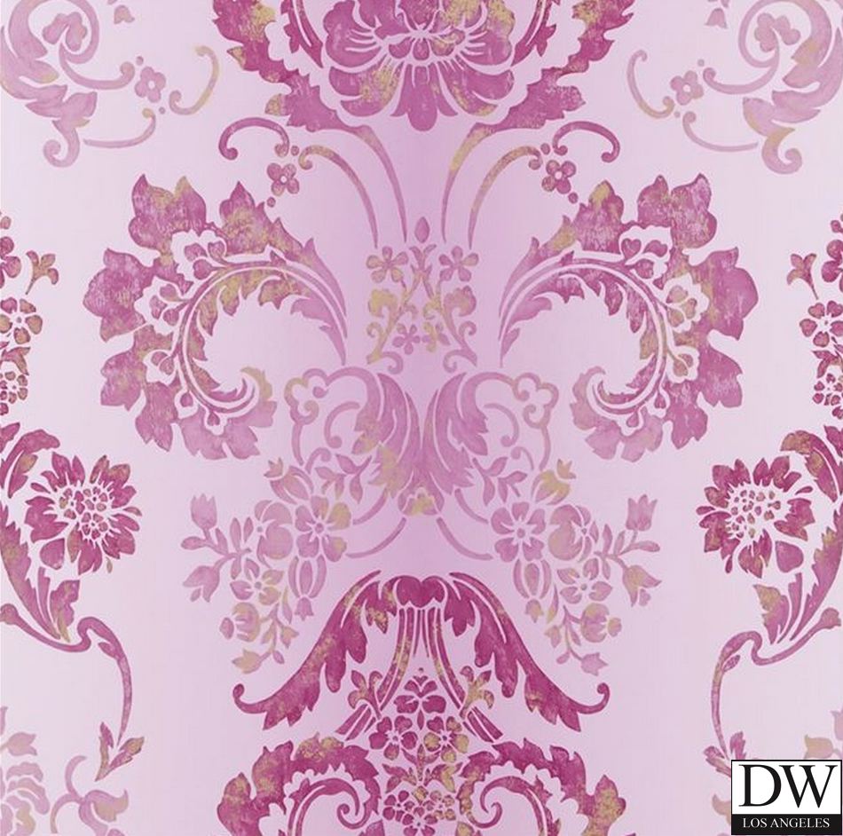 European Classic Wallcovering. Contemporary in character with a vintage flourishes, this beautifully layered printed damask paper shades in both the pattern and the background to create a really emotive sense of space. Flecks of metallic distressing add sparkle and complete the effect of this elegant wallpaper.