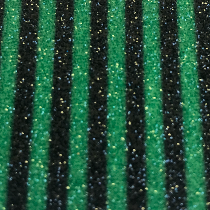 Stripe print glitter wallcovering in a dazzling green and black color. Made to order. 3-4 week lead time.