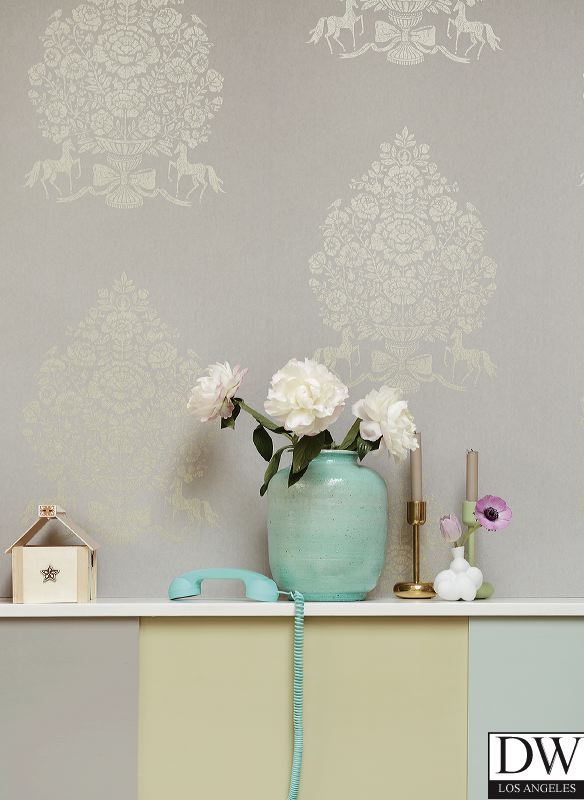 The Till Light Grey President Damask Wallpaper by LA Walls features an elegant, intricate damask pattern in soft light grey tones, perfect for sophisticated interiors. Its timeless design enhances any space with subtle luxury and refined texture. #luxurywalls #interiordetails #classicdesign