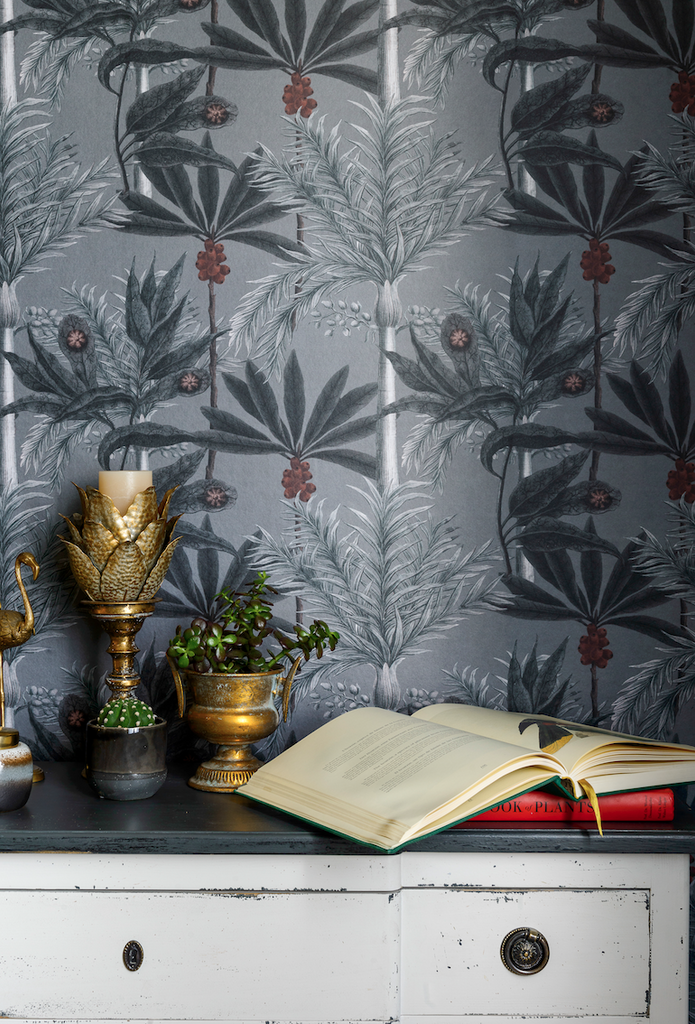 A delicate and soft design depicting some specific palm trees illustrations that can be found in the tropical rainforest of Madagascar. Available in two colour versions: tea green and grey. All Mind the Gap wallpapers are made on new generation non-woven substrate. Printed with eco-friendly inks, MINDTHEGAP wallpaper are easy to install on any wall type. When hanging the wallpaper, apply the ready-mix adhesive paste on the wall and hang the strips one by one by butting the edges together. The adhesive allows for a while moving the wallpaper strips, so that the wallpaper pattern continues correctly from one strip to another.